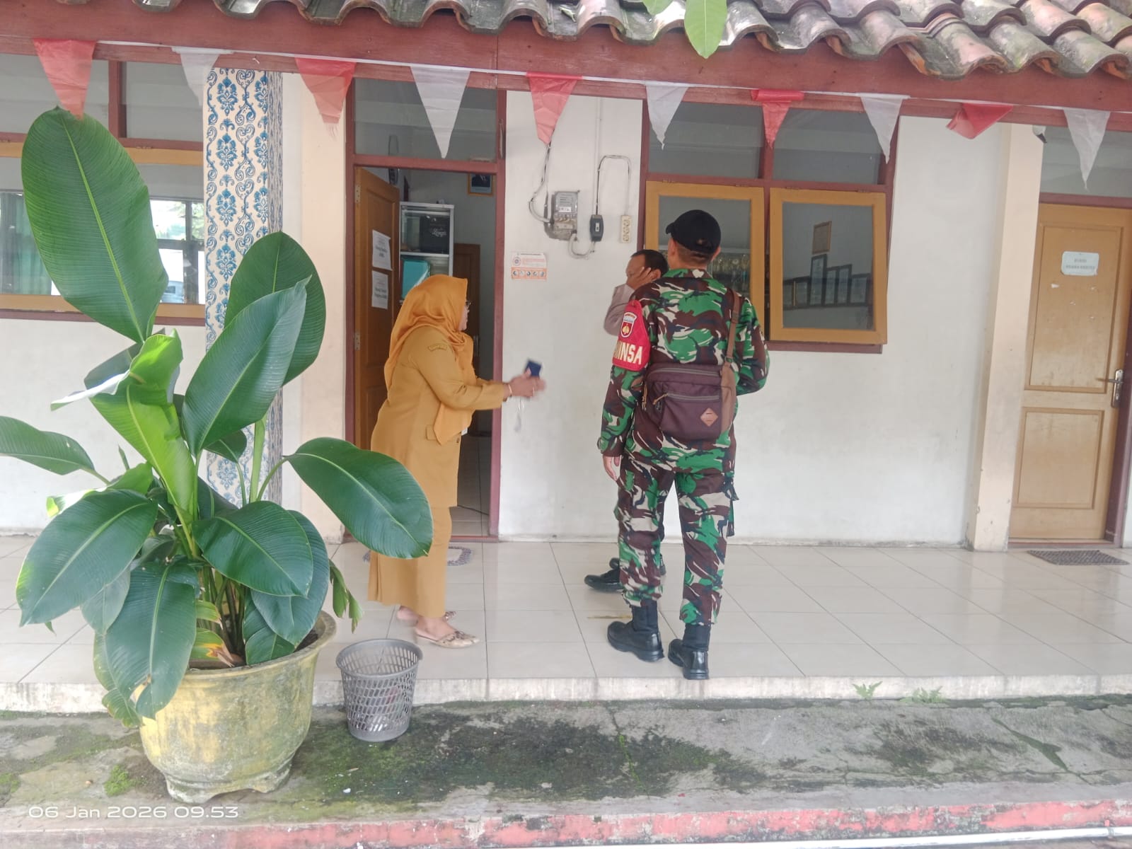 Surakarta, Dalam rangka menjaga kondusifitas wilayah Babinsa Danukusuman Koramil 03/Serengan Kodim 0735 Surakarta Serda Tito dan Bhabinkamtibmas Brigadir Kepala Dimas melaksanakan Sambang dan Silaturahmi jalin Komsos dengan Kepala Sekolah SDN Danukusuman Ibu Naniek S.pd yang bertempat di RT 03 RW 08 Kelurahan Danukusuman Kecamatan Serengan Kota Surakarta, Selasa 20/01/2026