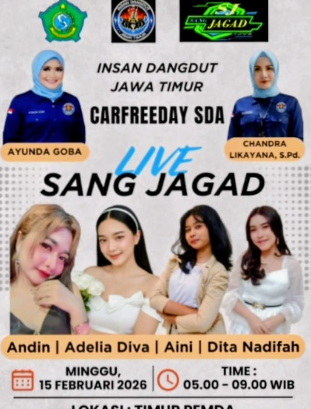 Sidoarjo, Minggu (15/2/2026) — Aktivitas Car Free Day (CFD) di Alun-Alun Sidoarjo pagi ini berlangsung lebih meriah dari biasanya. Selain menjadi ruang bagi masyarakat untuk berolahraga dan bersantai, kawasan pusat kota tersebut juga berubah menjadi panggung hiburan terbuka berkat penampilan Orkes Melayu Sang Jagad.