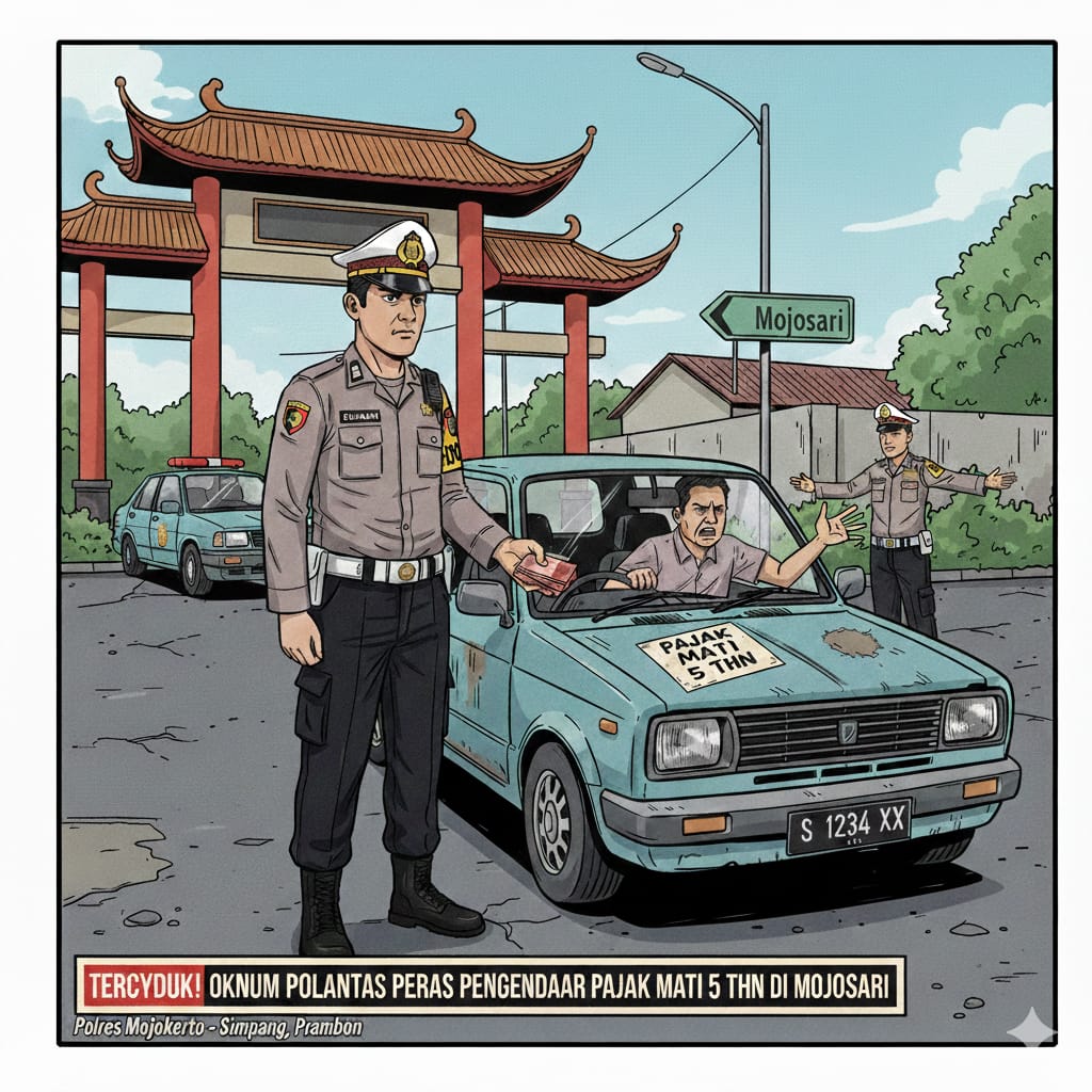 MOJOKERTO – Sebuah dugaan praktik pungutan liar (pungli) kembali mencuat di wilayah hukum Polres Mojokerto. Seorang oknum anggota Satuan Lalu Lintas (Satlantas) diduga meminta uang sebesar Rp500.000 kepada seorang pengendara mobil asal Desa Simpang, Kecamatan Prambon, dalam sebuah insiden yang terjadi pada akhir pekan lalu.