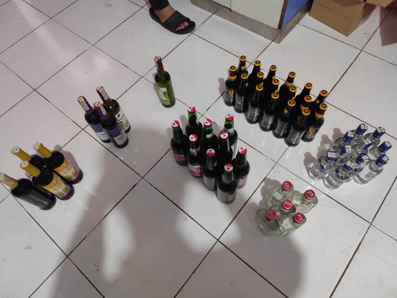 Hasilnya, puluhan botol minuman keras berbagai merek berhasil diamankan.