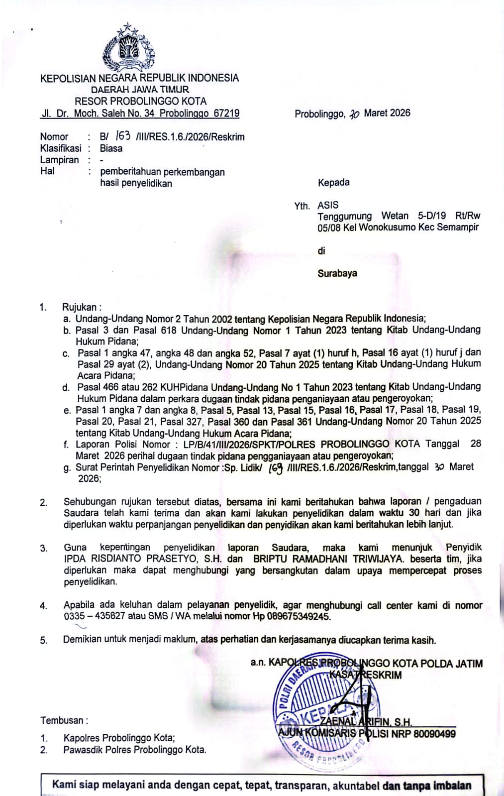 Dorongan agar proses hukum berjalan tegas tanpa intervensi juga terus disuarakan. Penanganan yang transparan dinilai penting untuk menjaga kepercayaan publik sekaligus memastikan rasa keadilan tetap terjaga.