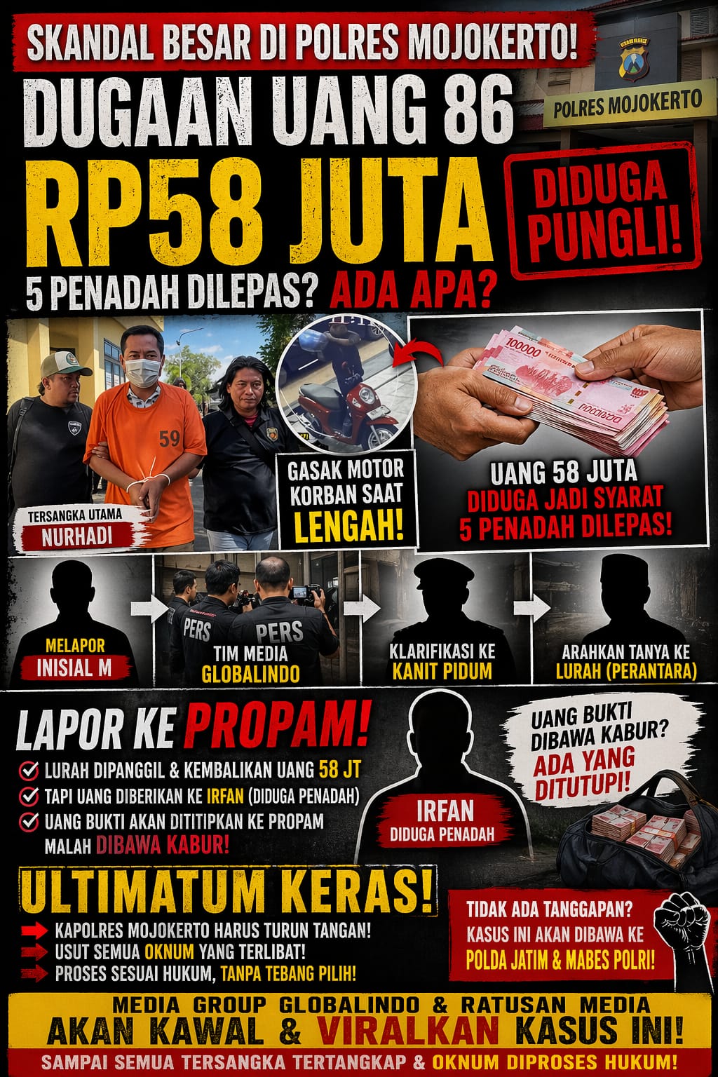 ULTIMATUM! Dugaan “Uang 86” Rp58 Juta di Kasus Curanmor Mojokerto, Kapolres Diminta Turun Tangan